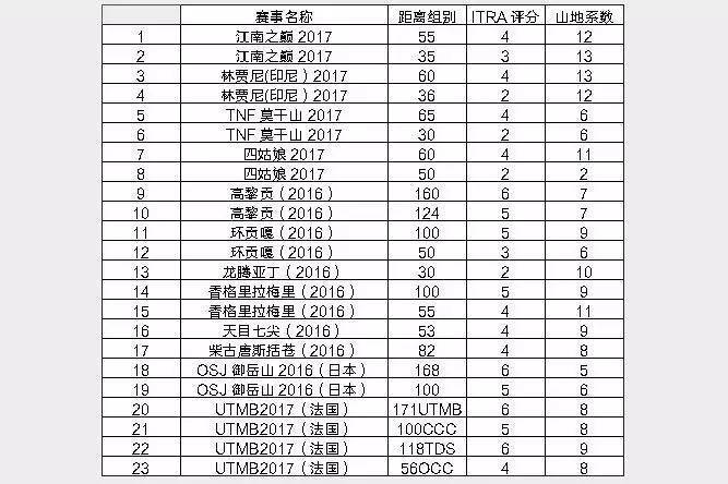 ITRA山地系数 Mountain level是国际越野跑协会评价赛道难度的一个重要指标,它由国际越野跑协会综合赛道平均海拔、爬升强度、地形地貌等因素,根据客观的考量予以打分,通常,一条常规的越野跑赛道,山地系数最高分为12分。