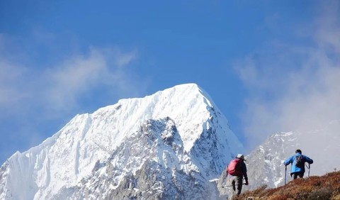 坡均营地是此行最震撼人心的景观点之一,被奶日顶卡冰川、来日贡卡、奶日顶卡、芒框腊卡等雪山围绕,下午有充裕的时间,可到海拔4000m近距离触摸冰川,或在营地周围晒晒太阳,喝喝咖啡。