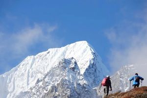登山装备配置:双肩背包1大1小(小包20-35L随身背,大包交马匹驼运),登山杖一对,头灯和备用电池,户外餐具,户外水杯