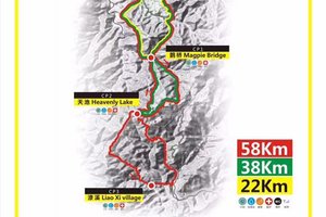 赛道距离:38公里,2200米爬升;22公里,1100米爬升,关门时间均为10.5小时